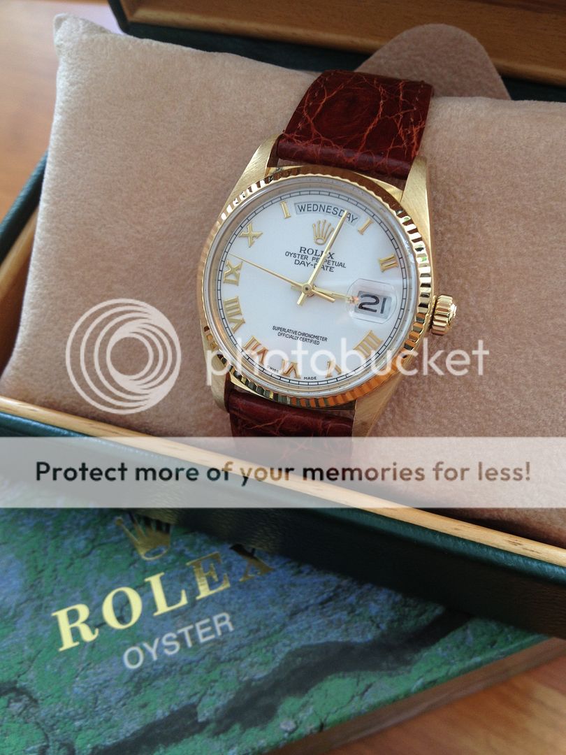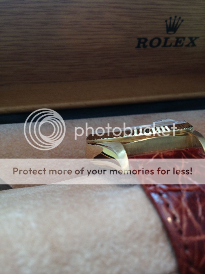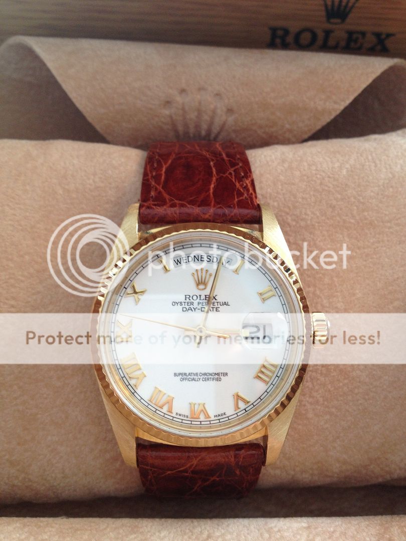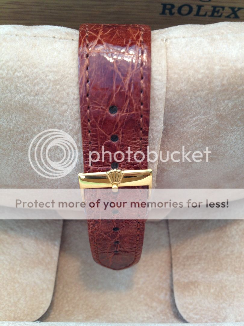 Kommer på ett Hirsch krokoband inköpt i juni med Rolexspänne. Originalbandet medföljer. Liten originalbox finns men inga papper.