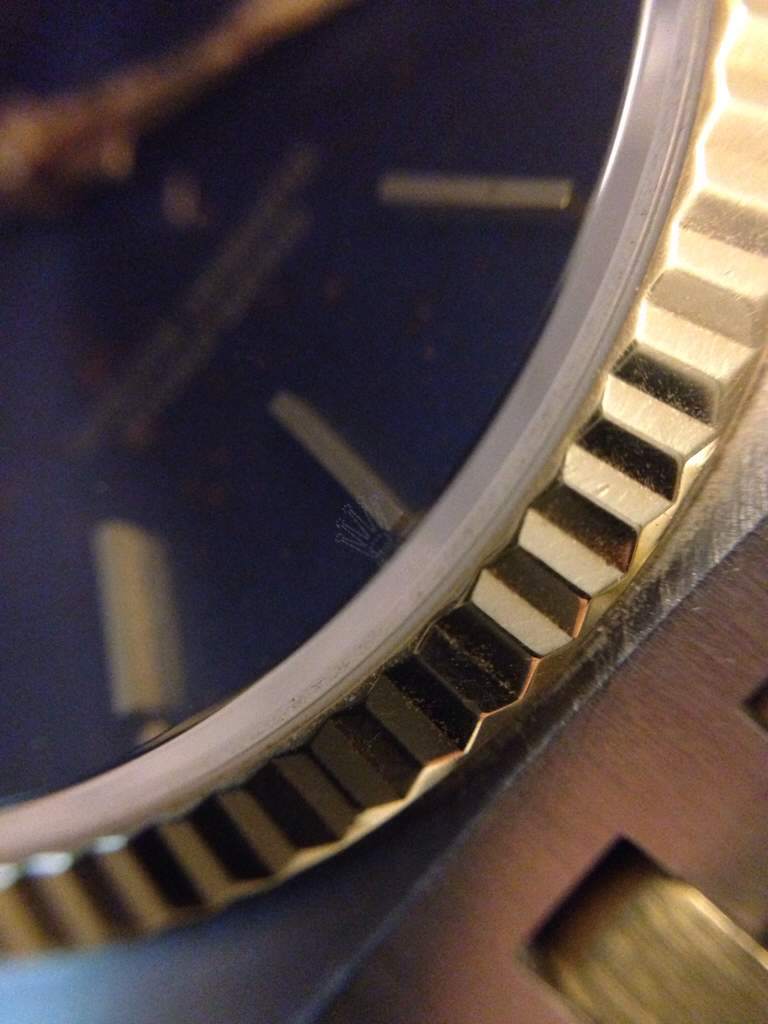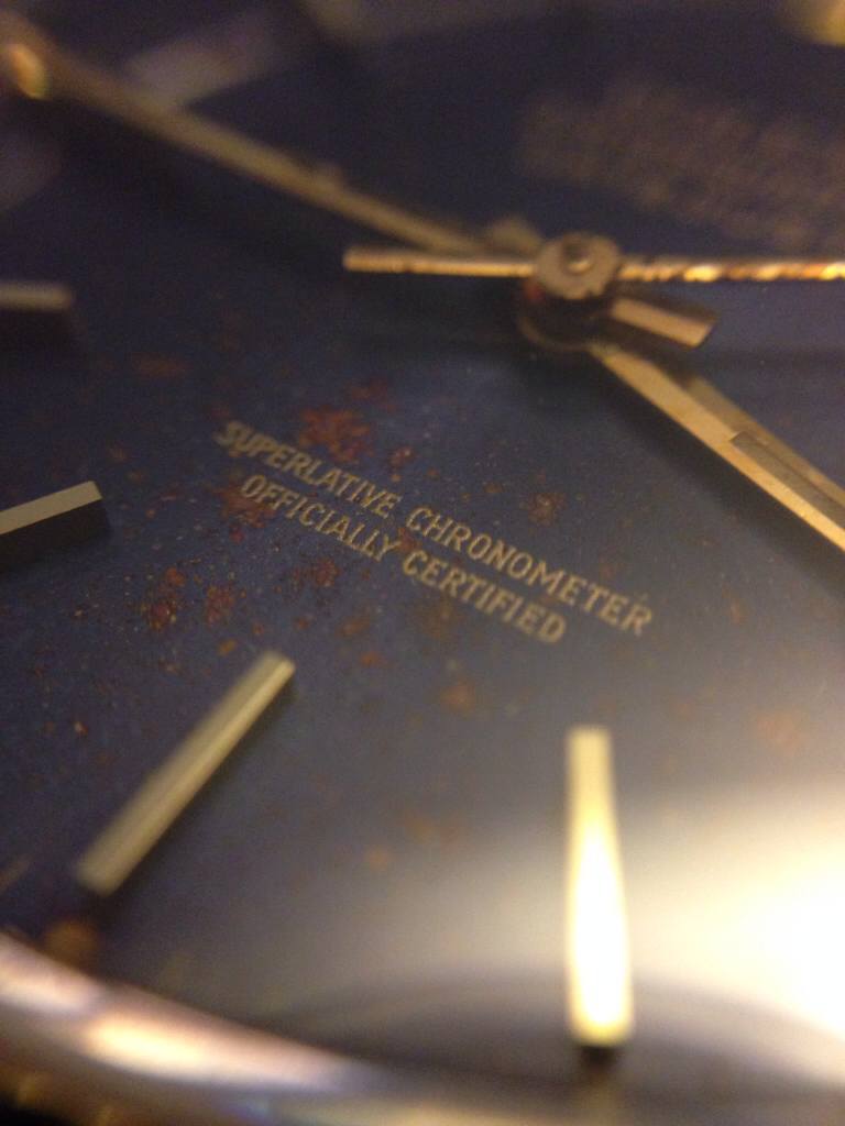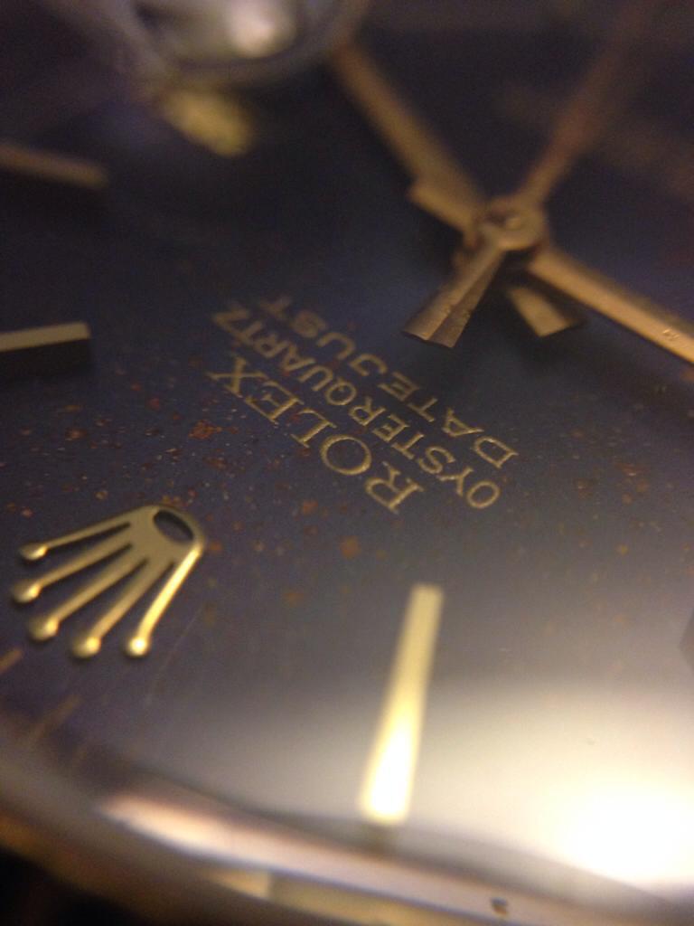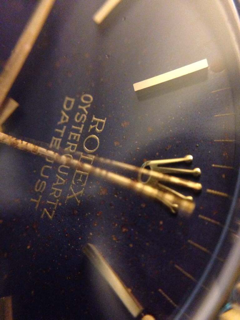 Rolex OQ ifrån 1979 första årsmodellen som var kronometer certifierad "COSC". För ungefär 2 år sedan kom det in kondens vilket bildade den fina tavlan så kallad "starburst dial", därefter renoverades klockan för 4500 : - enligt tidigare ägare finns dock inga papper som styrker detta. Tror det är full längd på länken 10 bitar + 2 extra bitar. Original Rolex glas mycket fint inga skador eller repor, krona samt kronhals mycket bra får skruva 4-5 varv innan den fäster.